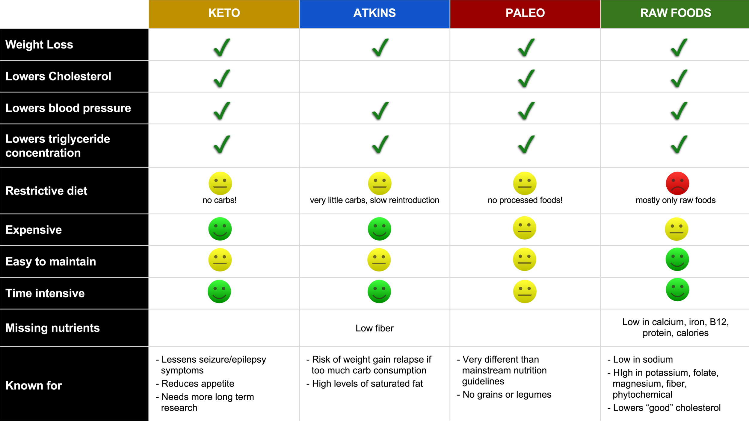 Everyone wants the perfect diet, an easy way to getting their dream body, and often look to popularized fad diets to do so. While I hope I don't have to tell you why the cabbage soup or cookie diets are bad ideas, there are aspects of some fad diets that are based in real science and could prove beneficial to us. However advisable or inadvisable following these might be, more information is never a bad thing, so here’s a basic comparison of a few of the more realistic fad diets.